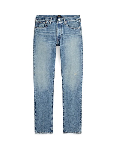 denim, lamé, distressed, faded, brand logo, solid color, medium wash, mid rise, belt loops, tapered leg, slim-leg pants, button fastenings, five pockets, straight-leg model