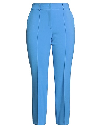 straight-leg pants, crepe, stretchy fabric, solid color, no appliqués, mid rise, belt loops, regular fit, zipper fastening, hook fastenings, multipockets, machine wash or dry clean, do not bleach, do not tumble dry