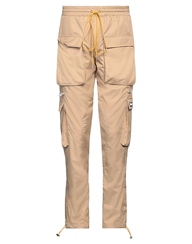 shell, brand logo, solid color, mid rise, elasticized waist, tapered leg, comfort fit, fully lined, drawstring closure, drawstring hem, multipockets, do not wash, do not tumble dry, do not bleach, do not iron, cargo