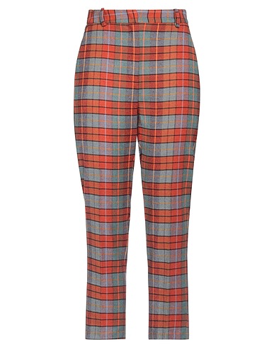 flannel, no appliqués, tartan pattern, high waisted, regular fit, zipper fastening, hook fastenings, multipockets, machine wash or dry clean, do not bleach, do not tumble dry, tapered pants