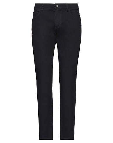tapered jeans, denim, stretchy fabric, solid color with appliqués, brand logo, embellished, colored wash, mid rise, belt loops, slim fit, 1 button, five pockets, machine wash or dry clean, do not bleach