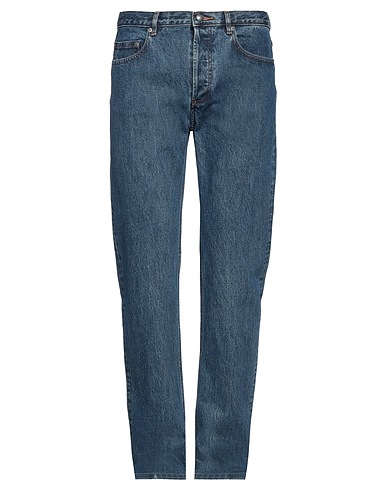 denim, faded, brand logo, solid color, dark wash, mid rise, regular fit, button fastenings, multipockets, machine wash, do not bleach, do not tumble dry, tapered jeans, this brand runs large