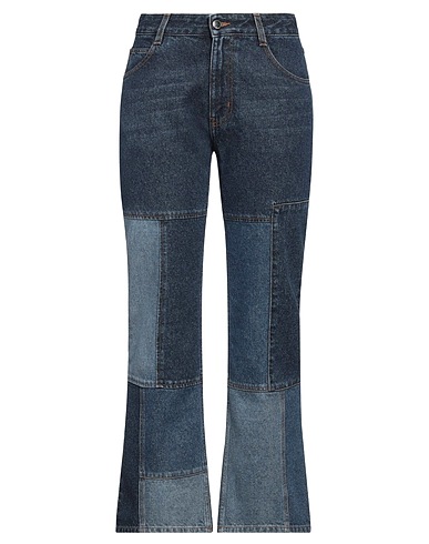 boot-cut jeans, denim, patchwork, no appliqués, dark wash, regular fit, zipper fastening, 1 button, multipockets, machine wash or dry clean, do not bleach, do not tumble dry, this brand runs large