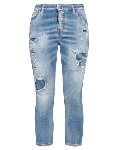 denim, faded, distressed, brand logo, solid color, medium wash, mid rise, regular fit, concealed button fastenings, multipockets, stretch, machine wash or dry clean, do not bleach, do not tumble dry, tapered jeans