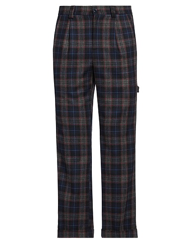 flannel, brand logo, tartan pattern, high waisted, straight leg, regular fit, zipper fastening, button fastenings, folded hem, multipockets, dry clean, do not bleach, do not tumble dry, tailored pants, designed for a loose fit