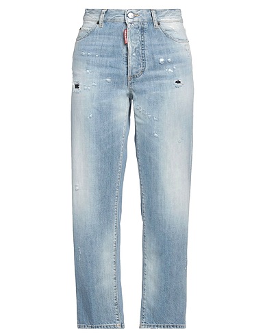 denim, distressed, faded, brand logo, solid color, light wash, high waisted, regular fit, button fastenings, multipockets, machine wash, do not bleach, do not tumble dry, tapered jeans