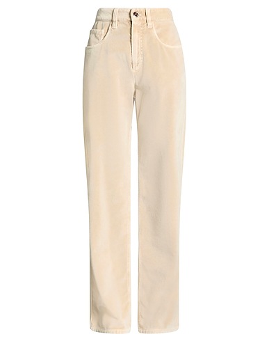 velvet, brand logo, solid color, high waisted, relaxed fit, 1 button, zipper fastening, multipockets, machine wash, do not bleach, do not tumble dry, contains non-textile parts of animal origin, straight-leg pants