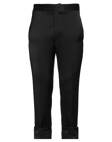 satin, no appliqués, solid color, high waisted, straight leg, regular fit, button fastenings, hook fastenings, multipockets, dry clean, do not bleach, do not tumble dry, cropped, tailored pants