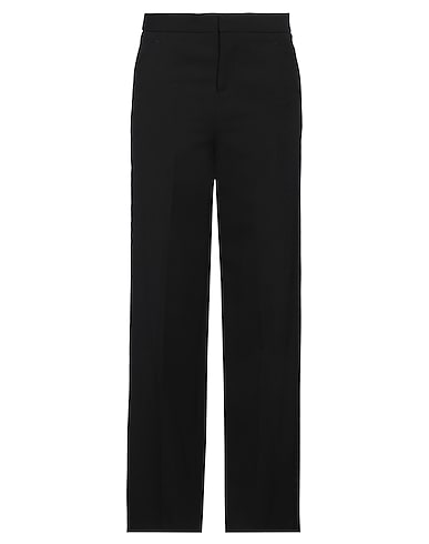 cool wool, grosgrain, side seam stripes, solid color with appliqués, high waisted, belt loops, regular fit, zipper fastening, hook fastenings, multipockets, stretch, dry clean, do not bleach, do not tumble dry, wide-leg pants