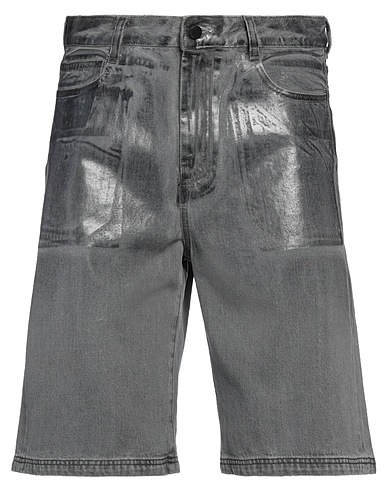 bermuda shorts, denim, coated effect, solid color, brand logo, colored wash, high waisted, regular fit, button fastenings, five pockets, machine wash or dry clean, do not bleach, do not tumble dry