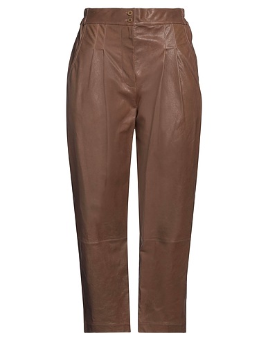 tapered pants, leather, darts, solid color, high waisted, regular fit, zipper fastening, button fastenings, multipockets, dry clean, do not bleach, do not tumble dry, contains non-textile parts of animal origin