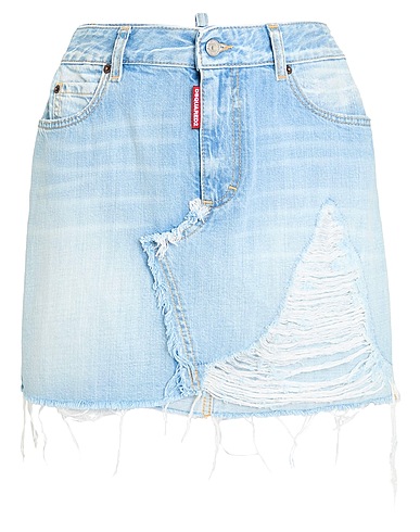 pencil skirt, denim, faded, brand logo, solid color, light wash, belt loops, unlined, 1 button, multipockets, machine wash, do not bleach, do not tumble dry