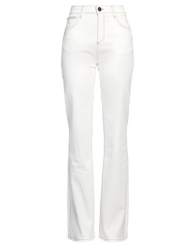 flared jeans, denim, brand logo, solid color, colored wash, mid rise, belt loops, regular fit, zipper fastening, 1 button, multipockets, stretch, machine wash or dry clean, do not bleach, do not tumble dry, this brand runs small