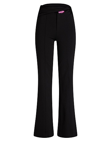 flared pants, jersey, no appliqués, solid color, mid rise, regular fit, zipper fastening, hook fastenings, without pockets, stretch, hand wash, do not tumble dry