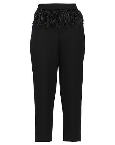 tapered pants, crepe, solid color with appliqués, feathers, high waisted, regular fit, zipper fastening, hook fastenings, multipockets, hand wash or dry clean, do not bleach, do not tumble dry