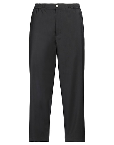 casual pants, cool wool, solid color, no appliqués, low-crotch, elasticized waist, straight leg, regular fit, 1 button, zipper fastening, multipockets, dry clean, do not bleach, do not tumble dry
