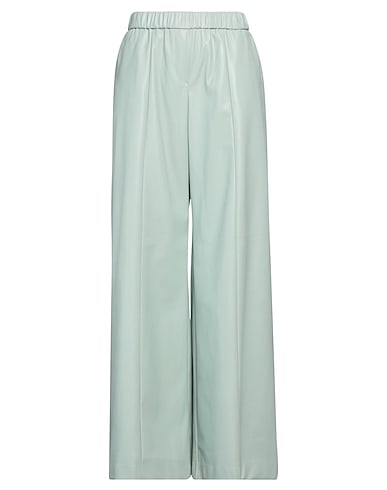 wide-leg pants, coated fabric, solid color, no appliqués, mid rise, elasticized waist, regular fit, multipockets, do not wash, do not bleach, do not tumble dry