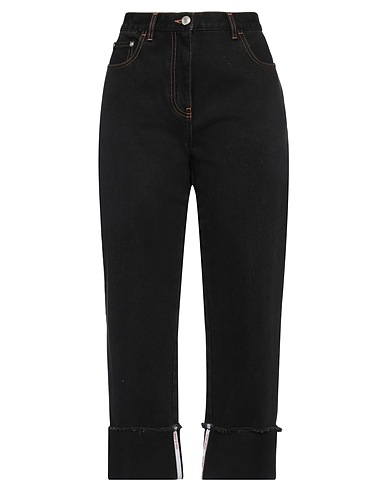 straight-leg jeans, denim, solid color, brand logo, dark wash, high waisted, regular fit, pockets, machine wash or dry clean, do not bleach, tumble dry