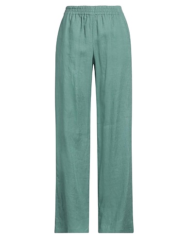 straight-leg pants, linen, solid color, no appliqués, high waisted, elasticized waist, relaxed fit, multipockets, dry clean, do not bleach, do not tumble dry