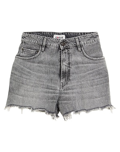 shorts, denim, distressed, faded, solid color, brand logo, colored wash, high waisted, regular fit, 1 button, zipper fastening, fringed hem, five pockets, machine wash or dry clean, do not bleach, do not tumble dry, contains non-textile parts of animal origin, planning a weekend getaway or beach vacation? this is the effortless summer style you need