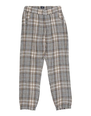 linen, tartan pattern, brand logo, elasticized waist, multipockets, machine wash or dry clean, do not bleach, do not tumble dry