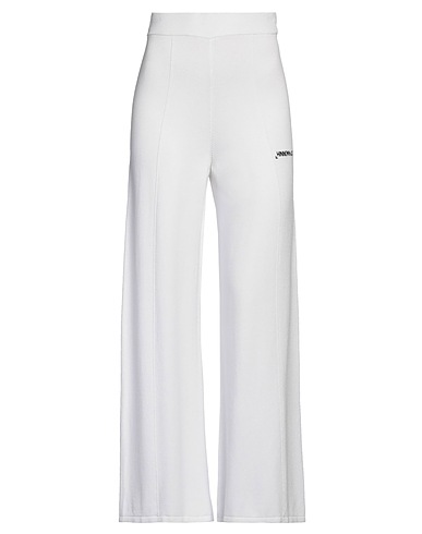 flared pants, knitted, lightweight knit, solid color, embroidered logo, high waisted, elasticized waist, relaxed fit, without pockets, stretch, machine wash or dry clean, do not bleach, do not tumble dry