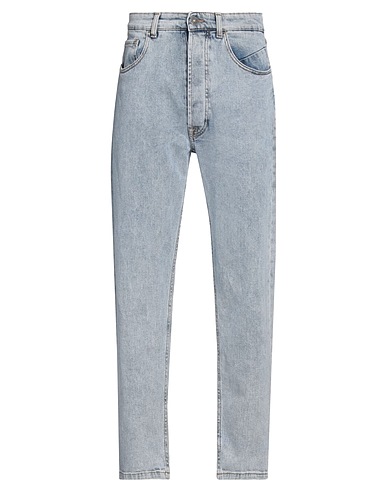 straight-leg jeans, denim, stretchy fabric, solid color, brand logo, light wash, mid rise, regular fit, button fastenings, five pockets, machine wash, do not bleach, do not tumble dry