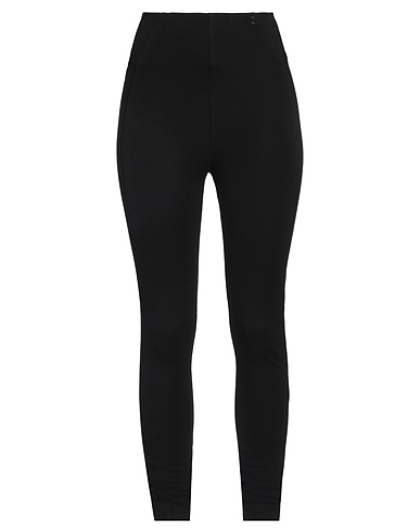 leggings, jersey, solid color, leather trims, brand logo, high waisted, elasticized waist, slim fit, stretch, machine wash or dry clean, do not bleach, do not tumble dry, contains non-textile parts of animal origin