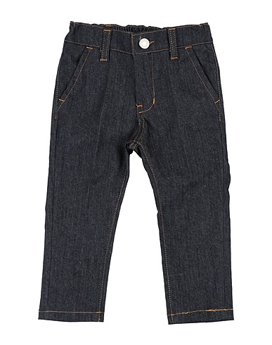 denim, stretchy fabric, solid color, no appliqués, dark wash, 1 button, zipper fastening, five pockets, machine wash or dry clean, do not bleach, do not tumble dry