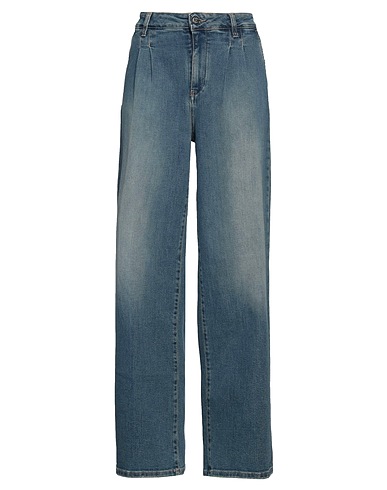 wide-leg jeans, denim, faded, stretchy fabric, solid color, brand logo, medium wash, high waisted, relaxed fit, zipper fastening, 1 button, pockets, machine wash, do not tumble dry