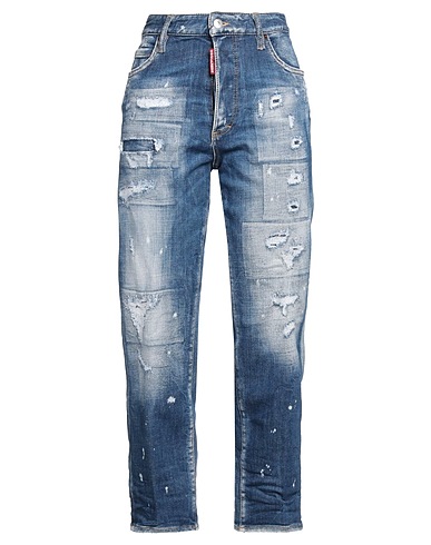straight-leg jeans, denim, distressed, faded, solid color, brand logo, medium wash, mid rise, regular fit, button fastenings, multipockets, stretch, machine wash, do not bleach, do not tumble dry
