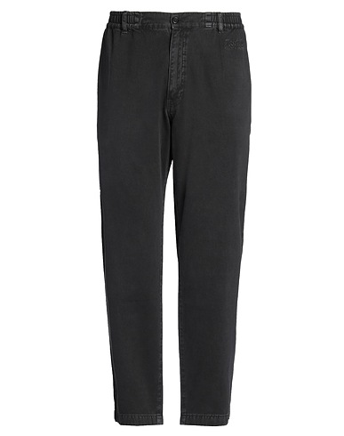 casual pants, twill, solid color, embroidered logo, high waisted, tapered leg, regular fit, zipper fastening, 1 button, multipockets, machine wash, do not bleach, do not tumble dry