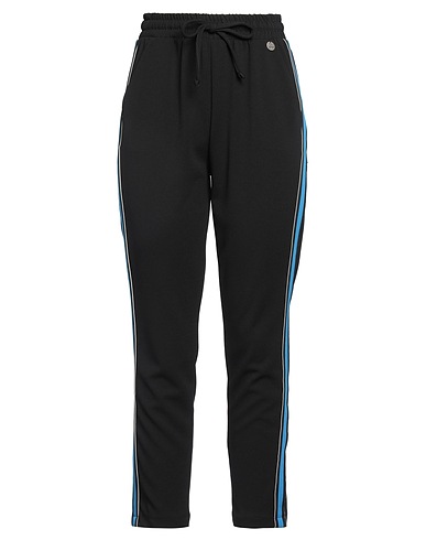 track pants, crepe, solid color with appliqués, side seam stripes, brand logo, high waisted, drawstring waist, relaxed fit, multipockets, stretch, hand wash or dry clean, do not bleach, do not tumble dry