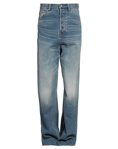 baggy jeans, denim, faded, solid color, side seam stripes, leather trims, medium wash, low-crotch, relaxed fit, zipper fastening, 1 button, five pockets, machine wash, do not bleach, tumble dry, contains non-textile parts of animal origin