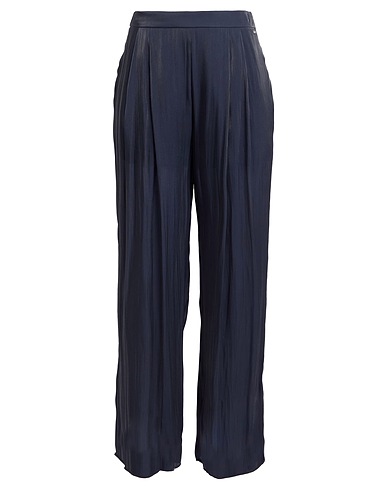 wide-leg pants, georgette, metallic, solid color, brand logo, high waisted, relaxed fit, zipper fastening, pockets, machine wash, do not bleach, do not tumble dry
