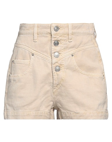 shorts, denim, solid color, brand logo, leather trims, colored wash, high waisted, button fastenings, five pockets, machine wash or dry clean, do not tumble dry, contains non-textile parts of animal origin
