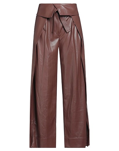 wide-leg pants, coated fabric, solid color, belt, high waisted, regular fit, zipper fastening, 1 button, multipockets, dry clean