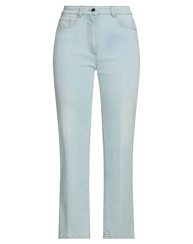 straight-leg jeans, denim, faded, stretchy fabric, solid color, brand logo, light wash, high waisted, belt loops, regular fit, zipper fastening, 1 button, pockets, machine wash or dry clean, do not bleach, tumble dry