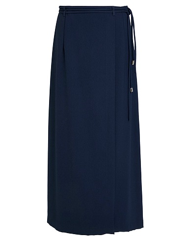 wrap skirt, crepe, solid color, no appliqués, tie fastening, machine wash or dry clean, do not bleach, do not tumble dry