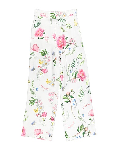 satin, floral-print, brand logo, elasticized waist, multipockets, machine wash or dry clean, do not bleach, do not tumble dry