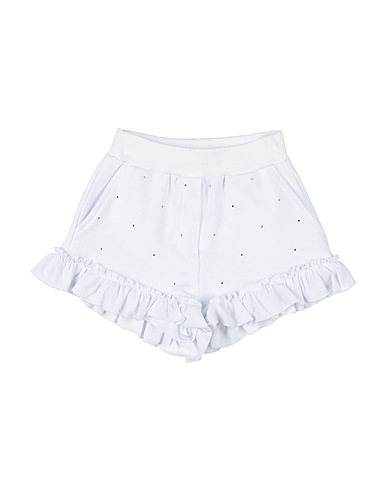 french terry, stretchy fabric, solid color with appliqués, crystals, brand logo, ruffles, mid rise, elasticized waist, slit pockets, machine wash, do not bleach, do not tumble dry