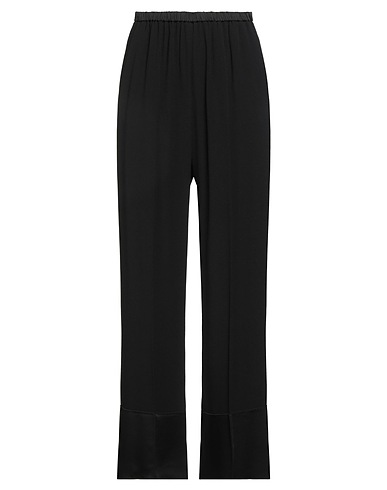 wide-leg pants, crepe, solid color, satin trims, high waisted, elasticized waist, relaxed fit, slit pocket, dry clean, do not bleach, do not tumble dry, this brand runs large