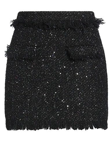 pencil skirt, bouclé, metallic, solid color with appliqués, sequins, fully lined, zipper fastening, hook fastenings, flap pockets, dry clean, do not bleach, do not tumble dry