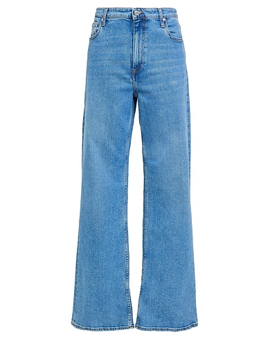 straight-leg jeans, model: flare, denim, solid color, brand logo, medium wash, high waisted, regular fit, zipper fastening, five pockets