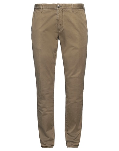 chino pants, gabardine, solid color, embroidered logo, mid rise, tapered leg, slim fit, zipper fastening, 1 button, multipockets, stretch, machine wash or dry clean, do not tumble dry