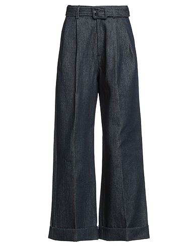 wide-leg jeans, denim, faded, solid color, belt, dark wash, high waisted, regular fit, zipper fastening, hook fastenings, slit pockets, hand wash or dry clean, do not bleach, do not tumble dry