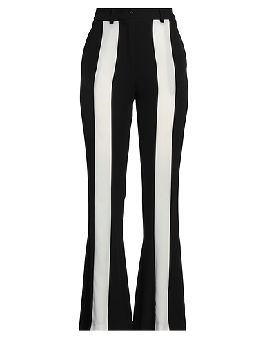 flared pants, crepe, two-tone, no appliqués, high waisted, regular fit, zipper fastening, 1 button, multipockets, stretch, machine wash, do not bleach, do not tumble dry