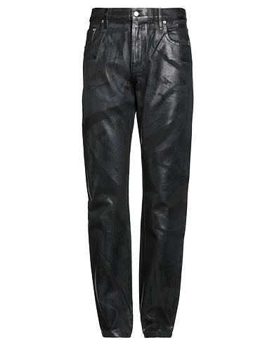 straight-leg jeans, denim, coated effect, solid color, no appliqués, colored wash, high waisted, regular fit, 1 button, zipper fastening, five pockets, dry clean, do not tumble dry