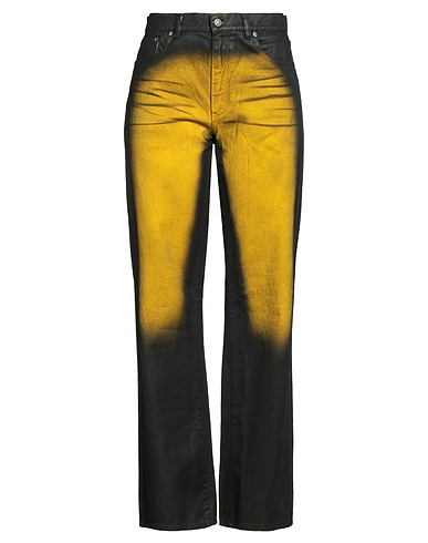 wide-leg jeans, denim, coated effect, two-tone, brand logo, colored wash, high waisted, belt loops, regular fit, unlined, zipper fastening, pockets, machine wash, do not bleach, tumble dry