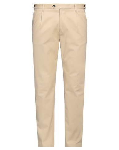 casual pants, gabardine, stretchy fabric, solid color, brand logo, high waisted, belt loops, tapered leg, regular fit, button fastenings, slit pockets, flap pockets, machine wash or dry clean, do not bleach, do not tumble dry